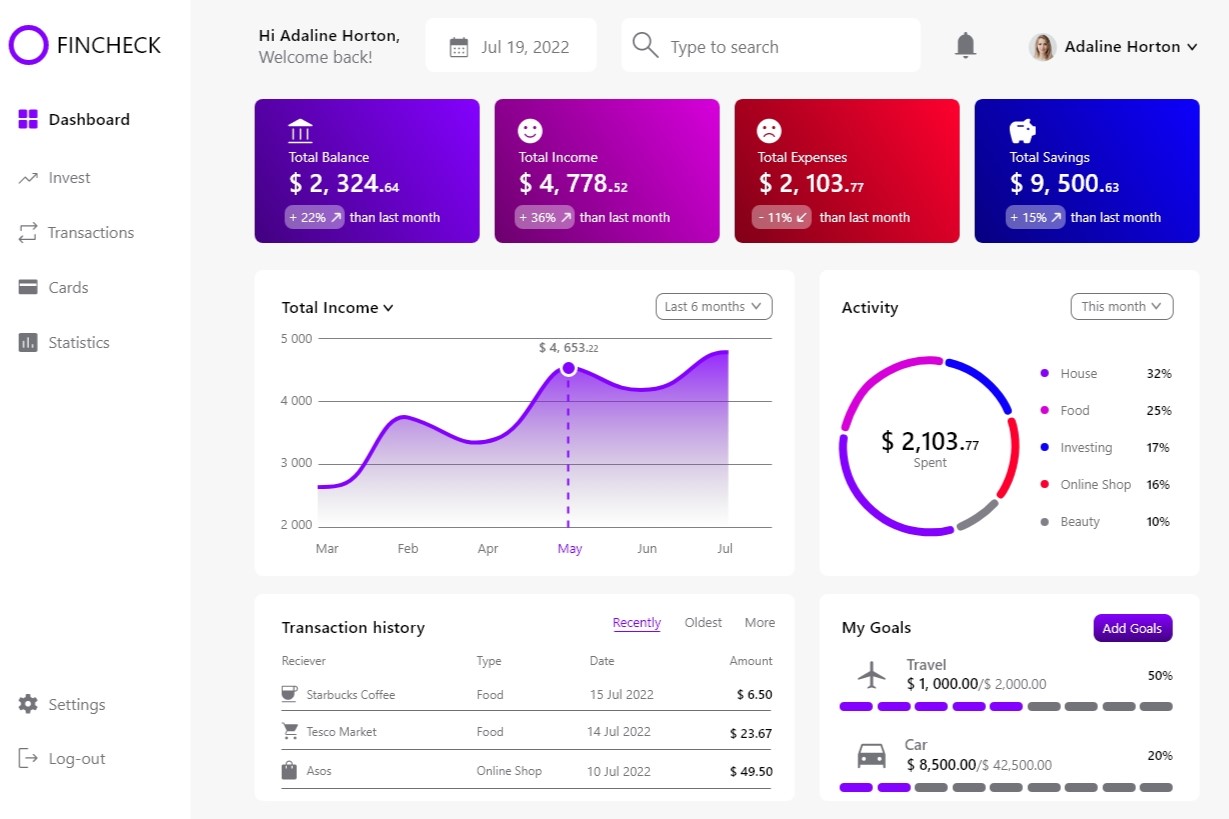Throughout the process, we created our own logos, brand colors, business cards, icons, and dashboards.